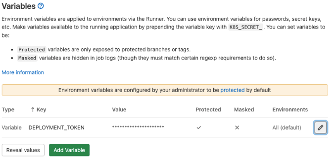 - Gitlab 레포지토리 > 설정 > CI/CD > Variables