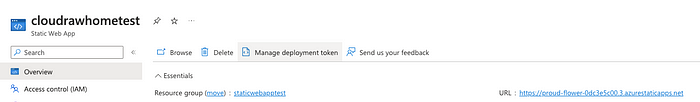 Static Web App 생성 시 자동으로 외부에서 접속할 수 있는 URL주소가 할당된 것을 확인할 수 있습니다.