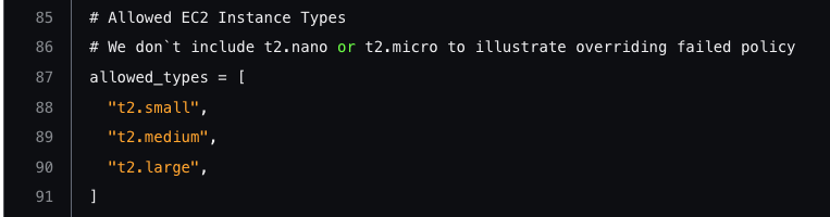 - 87라인의 allowed_types의 3가지(t2.small, t2.medium, t2.large)의 스펙에 대해서만 허용하고 있습니다.