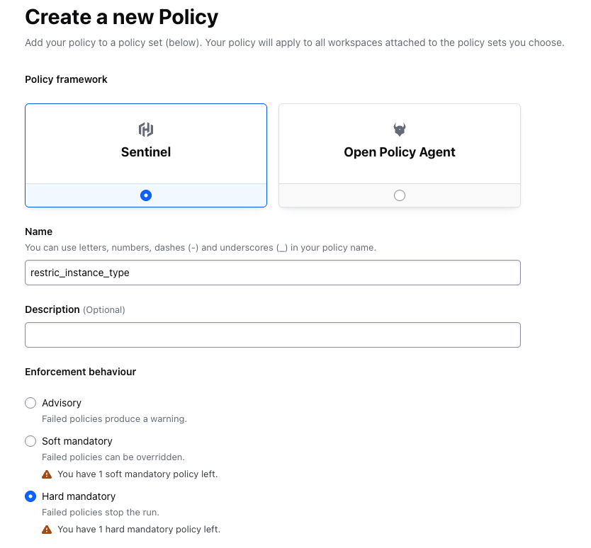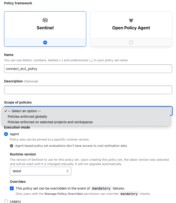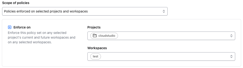 - 정책은 Scope설정을 통해 전역(Globally) 또는 Workspace 단위로 적용할 수 있습니다.