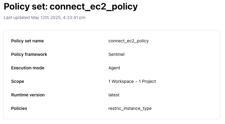 - 정책 생성 후 workspaces > Integrations > Policy sets 탭으로 이동합니다.