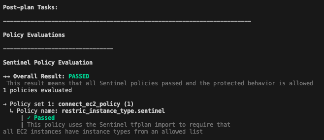 - 정책을 만족하였기 때문에 plan 동작 이후 Task가 Passed 상태가 되었습니다.