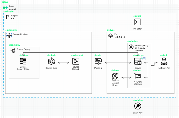 지금까지 Ubuntu Server를 배포하기 위한 아키텍처를 보여드렸습니다. 이 다음부터는 Ncloud Developer Tool을 활용한 CICD 아키텍처를 구성하는 방법을 설명하겠습니다.