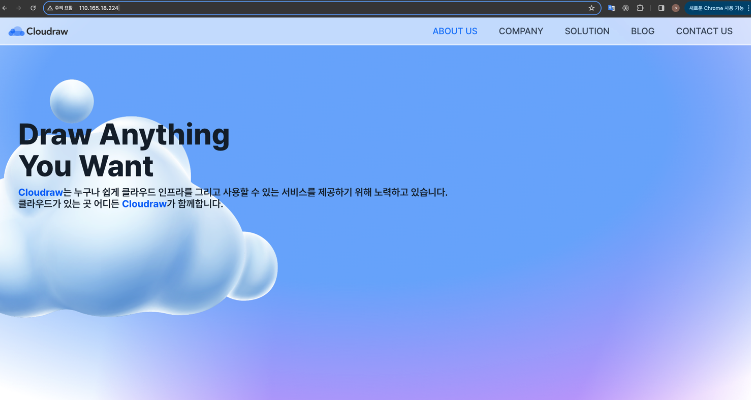 이후 브라우저 창에서 배포한 Target 서버의 Public IP를 입력하면 웹페이지가 정상적으로 실행된 것을 확인할 수 있습니다.