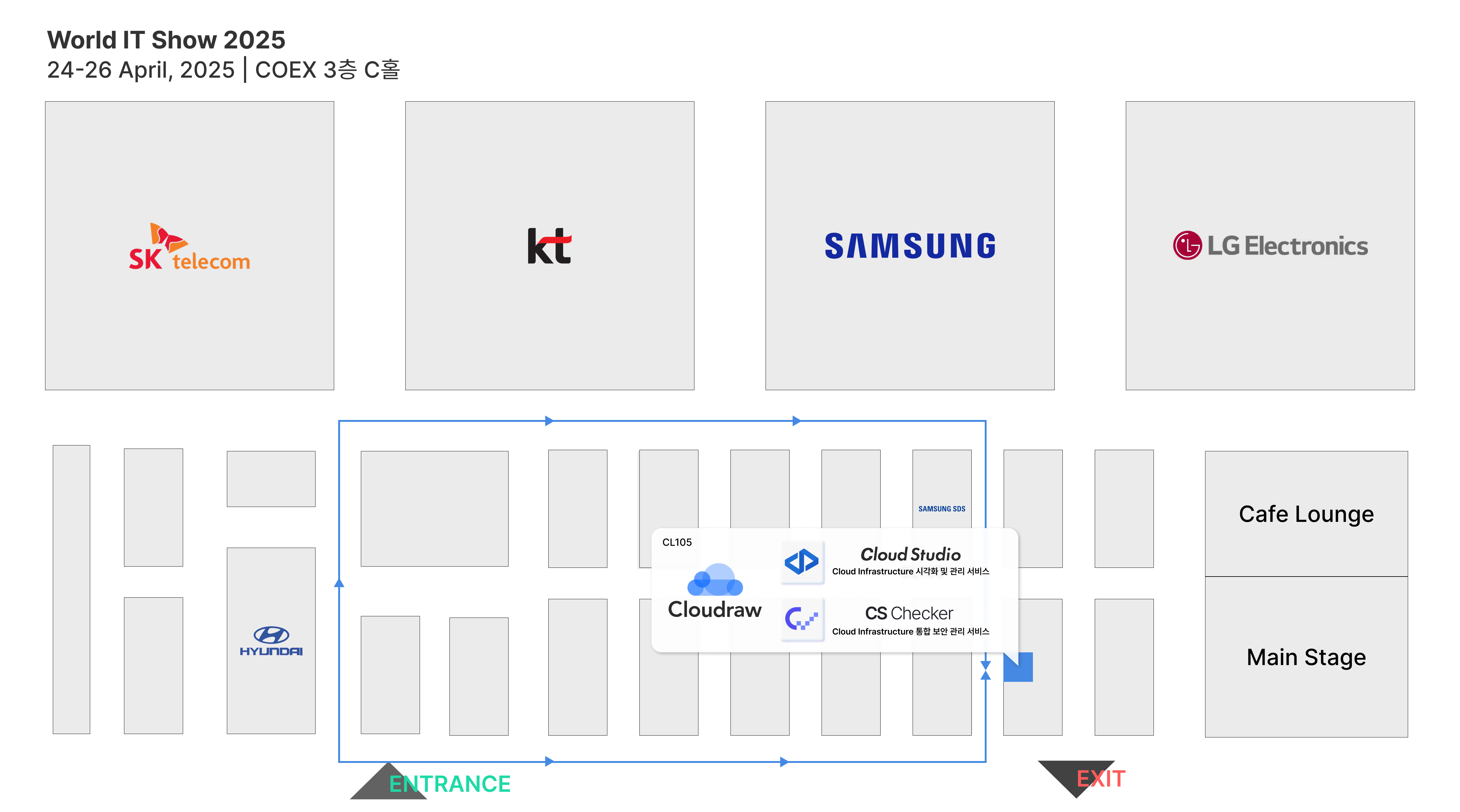 부스 위치는 3층 C홀(CL105)로 IaC 기반 클라우드 인프라 설계 및 관리 서비스인 CloudStudio와 클라우드 통합 보안 취약점 관리 도구인 CS Checker에 대한 소개와 데모를 진행합니다.